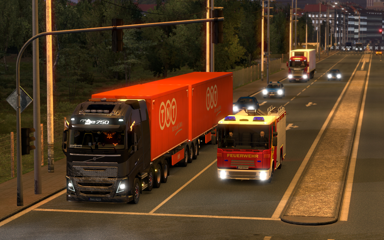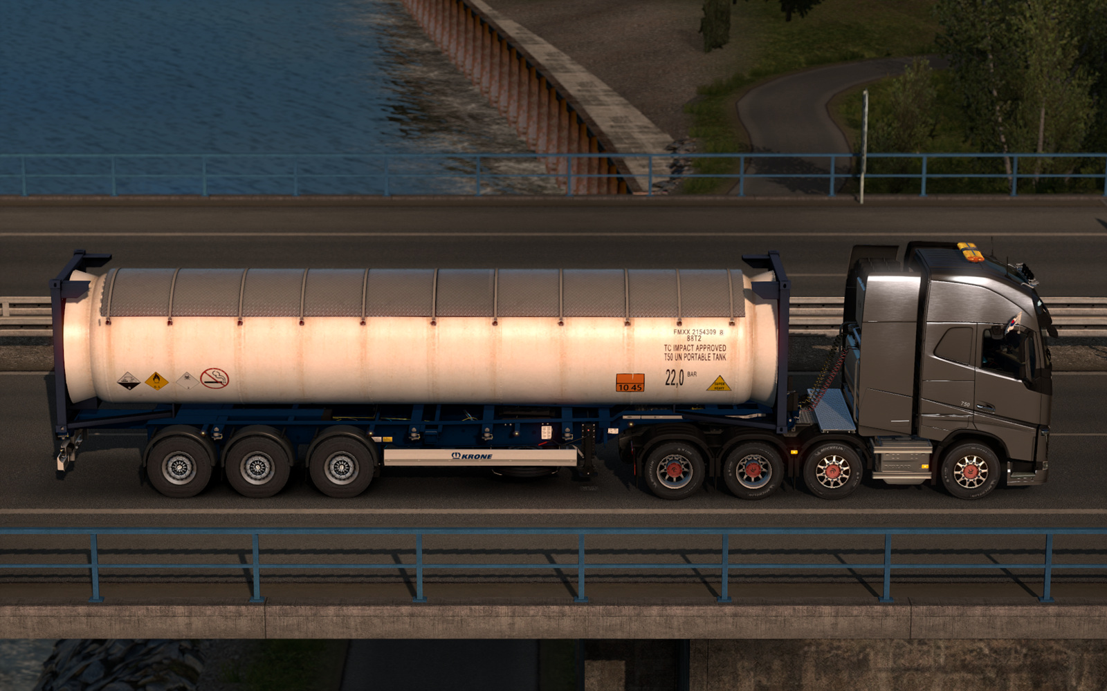 여담으로, 가로등 광원 이펙트가 아메리칸 트럭 시뮬레이터 스타일로 바뀐 이후 도로 분위기가 제법 깔끔해진 느낌입니다.