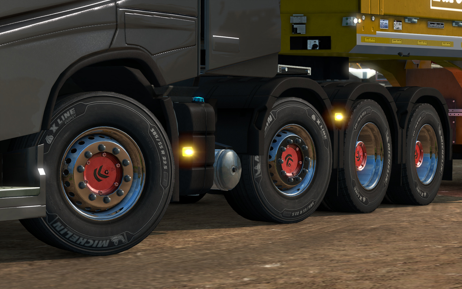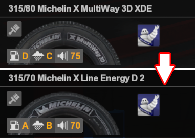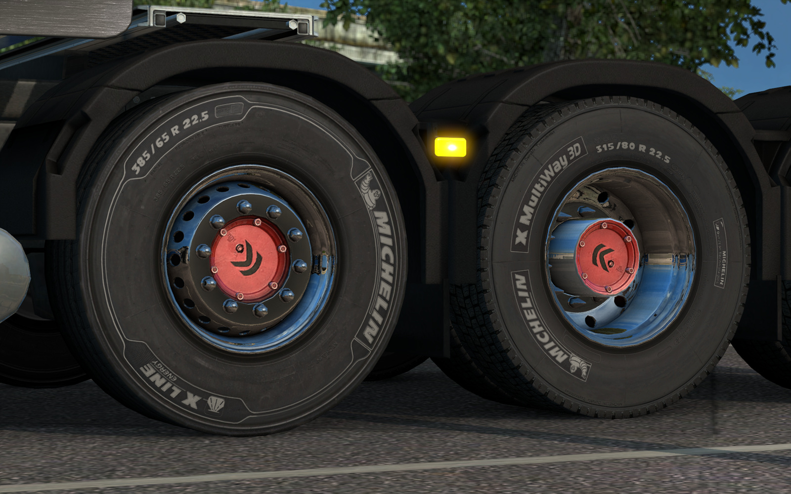 유로 트럭 시뮬레이터 2의 DLC 중 하나인 Michelin Fan Pack DLC를 설치하면 게임 내에서 튜닝할 수 있는 타이어 종류가 늘어나는데,