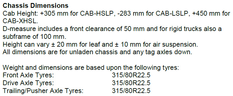 데이터 시트에 따르면 8x4 섀시의 경우 모든 축에 315/80R22.5 규격의 타이어를 기본으로 장착할 수 있다고 합니다.