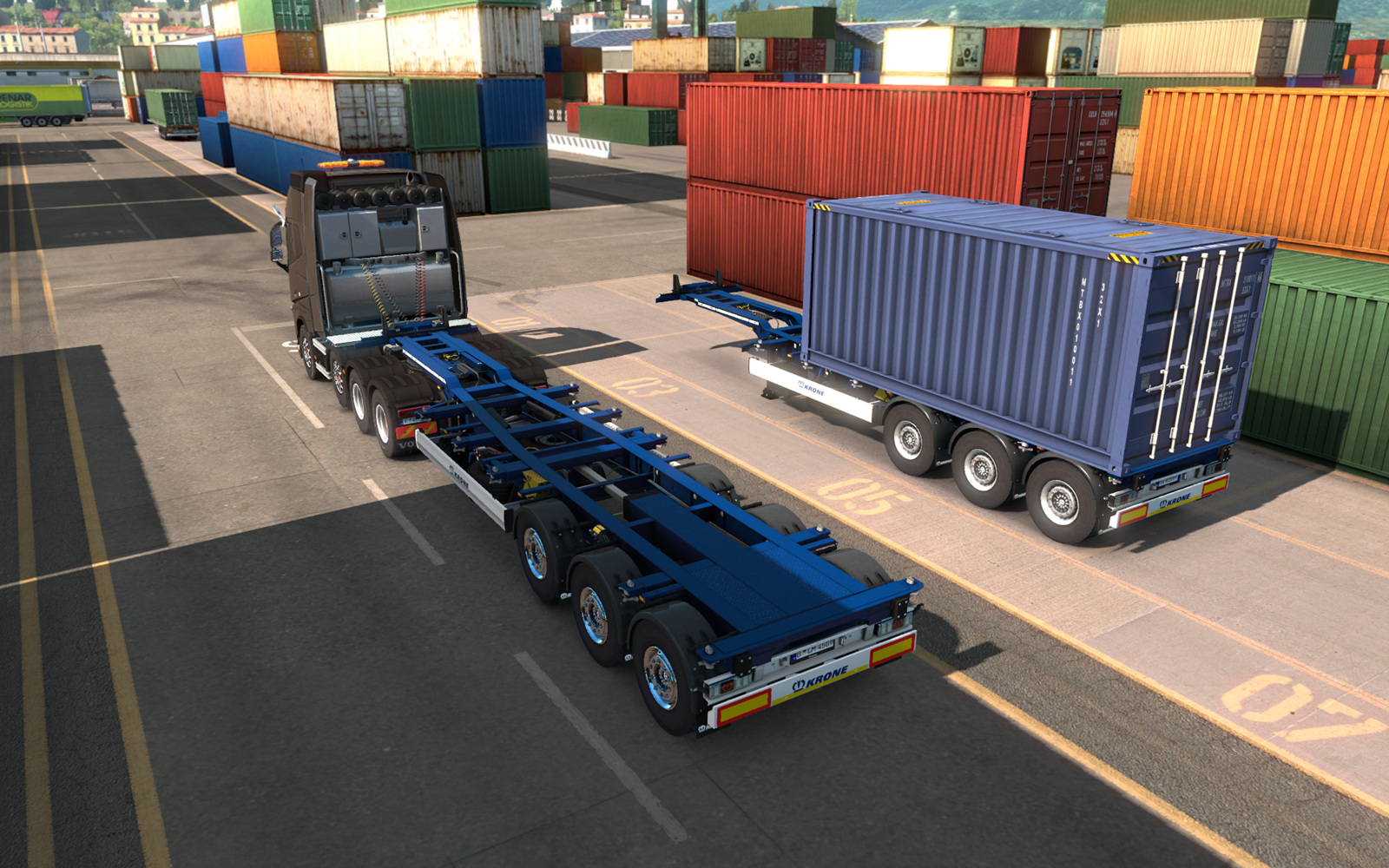 타이어를 교체한 후 시험 삼아 40ft 탱크로리가 실린 Krone Box liner를 연결해보았는데,